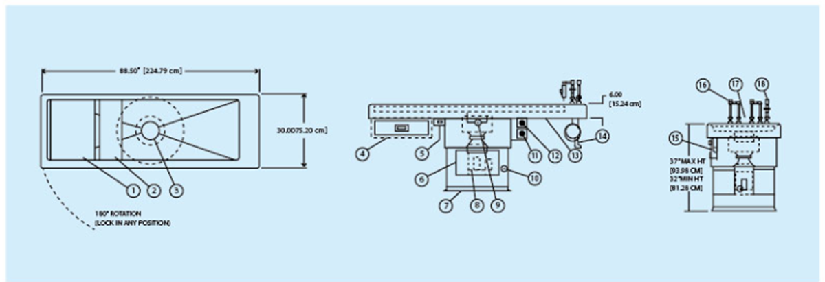 OUFAN-MC-3型的特点是可提开和旋转,使用者可垂直调节工作台的高度及180度旋转,有锁定装置可使工作台固定就位,台面高度可在32“至37" 范围内上升或下降5”( 12.7cm)。